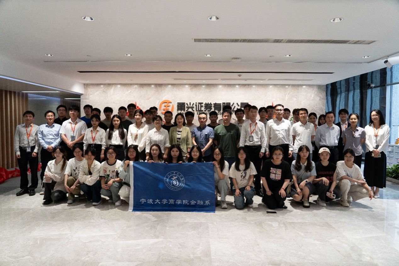 于5月23日下午携手举办了主题为“证券行业初探——走进甬兴证券”的专业劳动实践活动。金融系系主任邱波、金融硕士教育中心执行主任胡育蓉带领30名金融硕士生和金融本科生一起体验这场金融职业之旅。