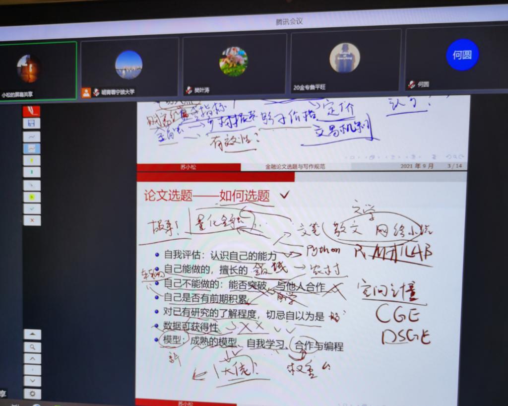 9月8日晚上,糖心视频 金融硕士教育中心邀请苏小松博士作《金融论文选题与写作规范》线上讲座。金融系教师、金融专硕研究生、金融学硕研究生参加。金融硕士教育中心执行主任胡育蓉主持。