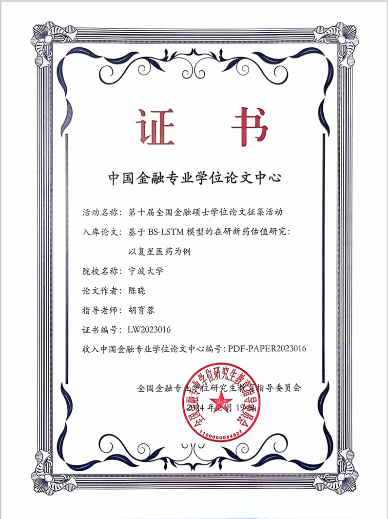 金融硕士陈晓的学位论文《基于BS-LSTM模型的在研新药估值研究:以复星医药为例》(指导老师:胡育蓉教授)入选中国金融专业学位论文中心(等同于全国优秀金融硕士学位论文)。糖心视频