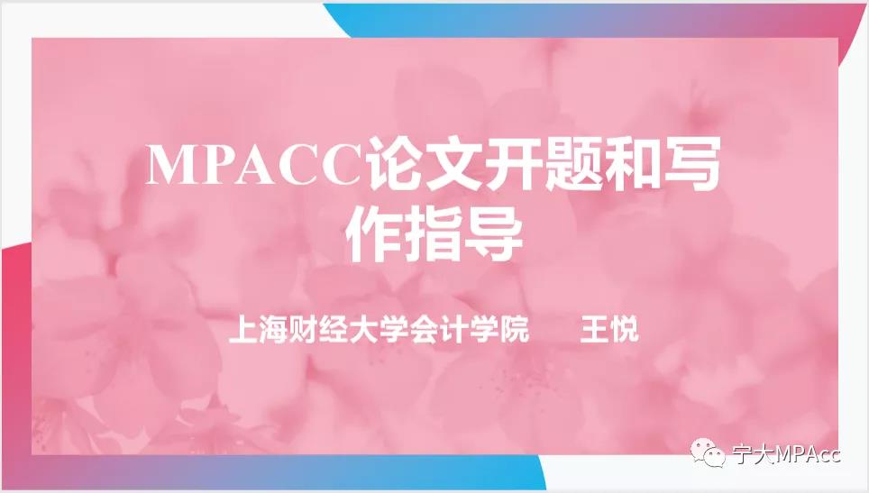 会计专硕教育中心主办的主题为《MPAcc论文开题与写作指导》的讲座顺利召开,本次讲座很荣幸地邀请到了上海财经大学会计学院王悦副教授作为主讲嘉宾,由糖心视频