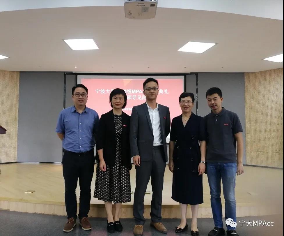 会计专硕学位点执行主任陈翼然老师、中国科学院大学宁波华美医院财务处长袁征、普华永道中天会计师事务所高级经理谢盈、欣捷投资控股集团有限公司总裁助理马煜东,以及2020级会计专硕全体学生。会议由陈翼然老师主持。
