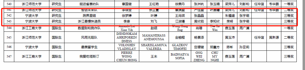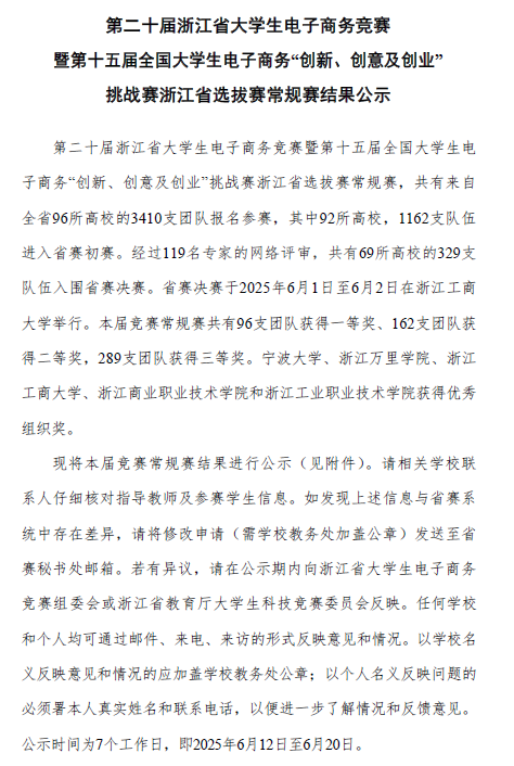 近日,第二十届浙江省大学生电子商务竞赛暨第十五届全国大学生电子商务“创新、创意及创业”挑战赛浙江省选拔赛常规赛结果揭晓,我校2024级国际商务硕士叶婷、徐梦婷、张晶晶所在的“跨界星链”团队,以及黄欣茹所在的“浙江最慢快递员”团队凭借创新项目和出色表现,双双荣获省三等奖。