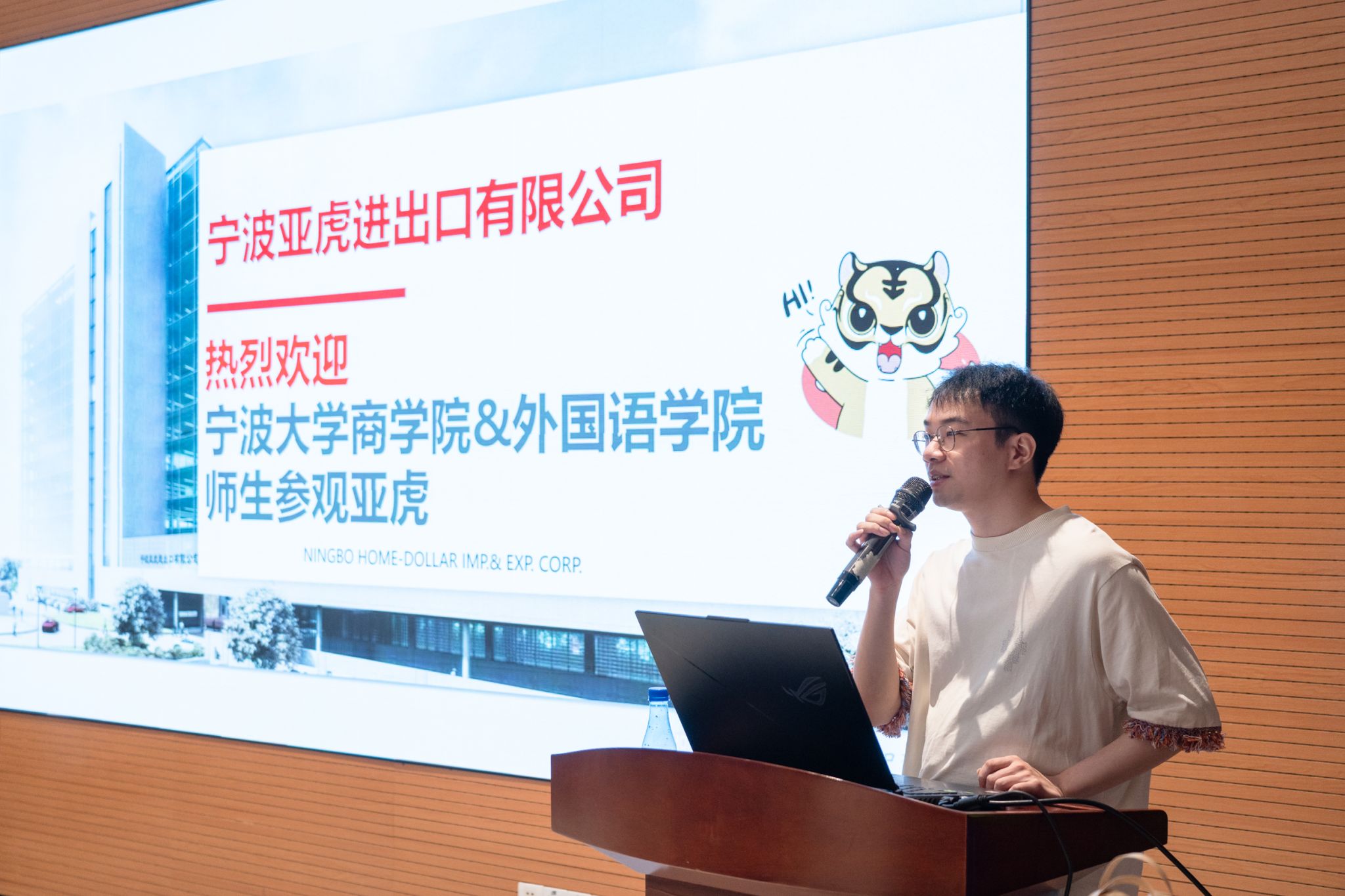 、外国语学院相关专业师生50余人赴宁波亚虎进出口有限公司开展访企活动。宁波亚虎进出口有限公司总经理龚利红、总经理助理杜晓凡、人事主管王奕兴予以亲切接待。