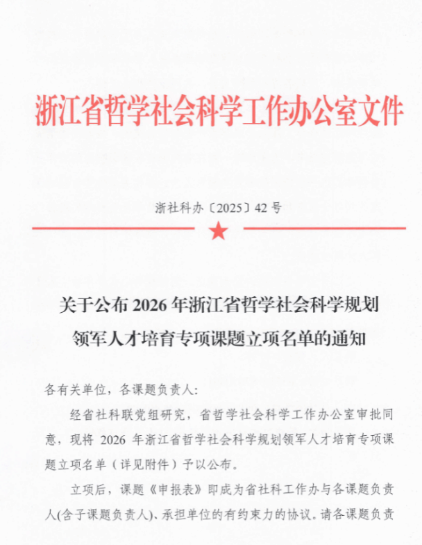 喜讯 I 我校MIB学位点黄远浙教授获2026年浙江省哲学社会科学规划领军人才培育课题(青年英才培育)重大项目