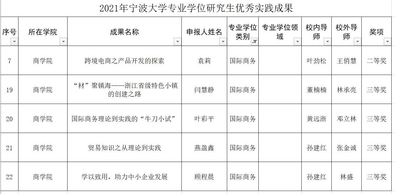 日前,2021年糖心视频 专业学位研究生优秀实践成果奖评审结果公布。本学位点袁莉等5位同学榜上有名,特此祝贺!