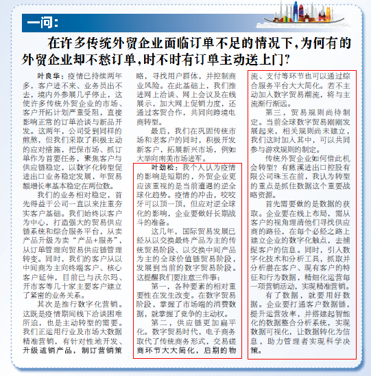 国际商务学位点叶劲松老师参加《宁波日报》甬派“外贸热点面对面”访谈