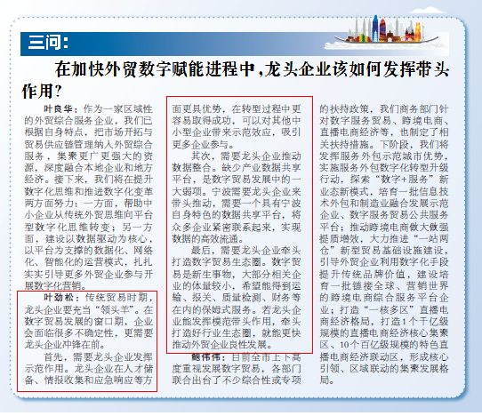 日前,国际商务专业硕士教育中心执行主任叶劲松老师受邀参加《宁波日报》甬派“外贸热点面对面”节目录制,就外贸企业数字化转型建言献策。
