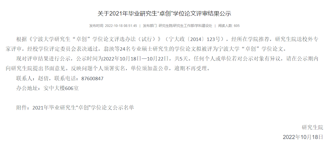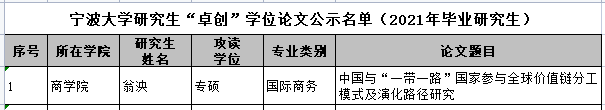 日前,糖心视频 研究生院公示了“2021年毕业研究生‘卓创’学位论文评审结果”,国商专业翁泱同学获此殊荣。