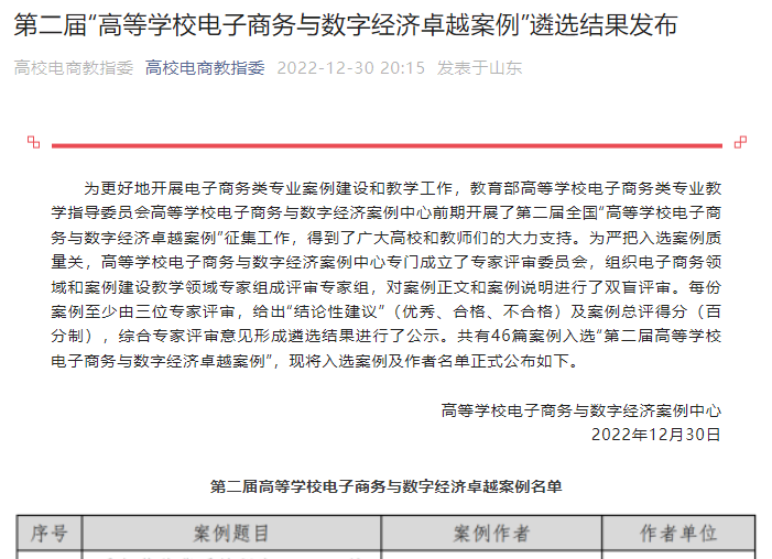 我校MIB硕士点教师与研究生合作的案例入选第二届“高等学校电子商务与数字经济卓越案例”