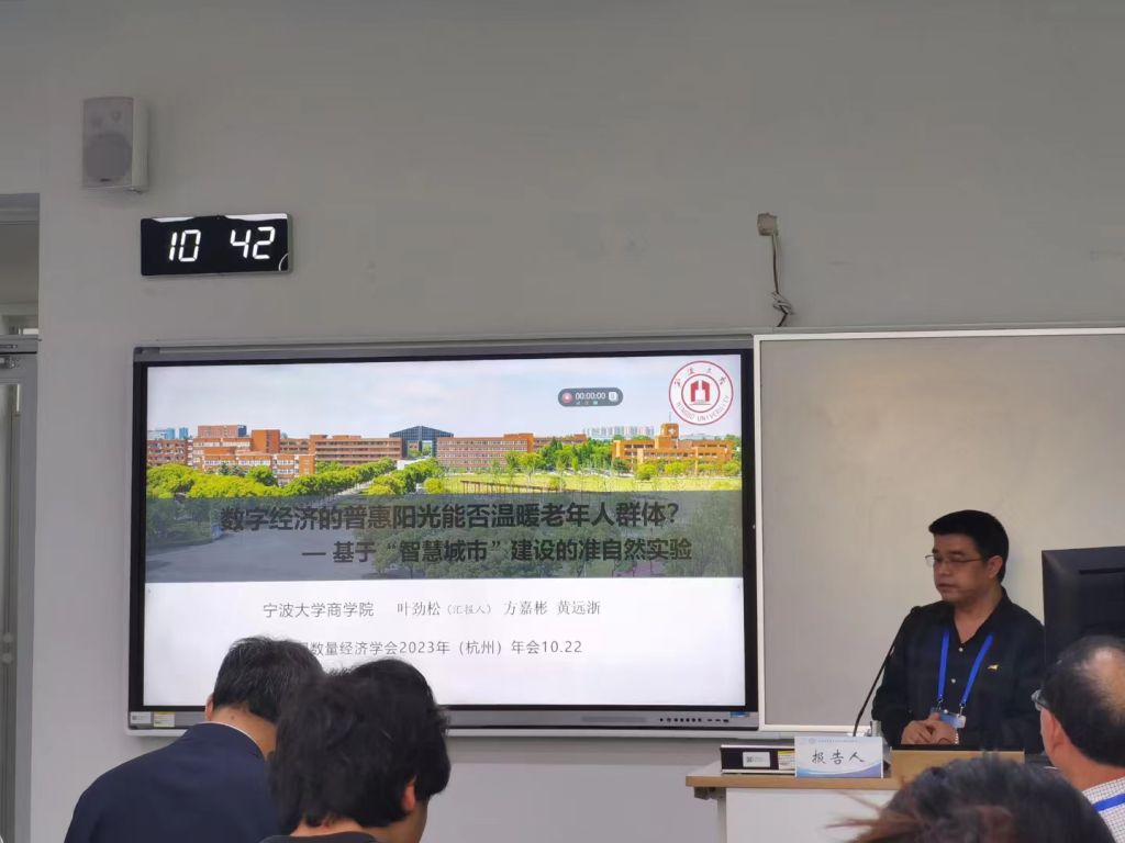 我校MIB学位点教师叶劲松与2022级研究生方嘉彬参加了本次年会,并在22日上午的“平行论坛16:数字经济与智能治理-Ⅲ”汇报了论文《数字经济的普惠阳光能否温暖老年人群体?》