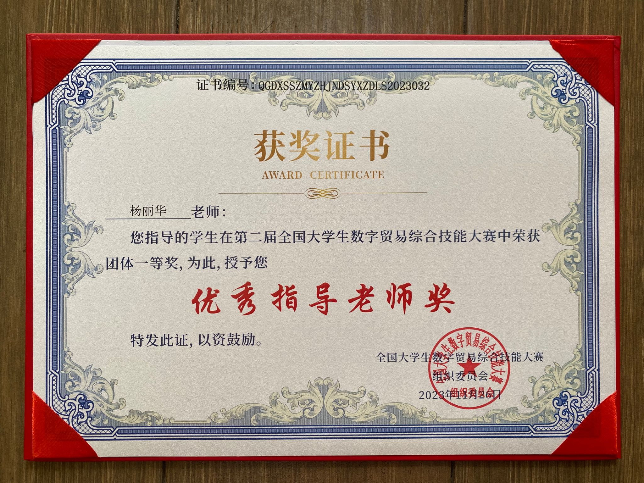 也被授予优秀组织奖。我校旨在培养具备全面的国际商务视野和国际化经营管理能力的人才,使其能够灵活应对全球商务环境和市场的变化。此次全国大学生数字贸易综合技能大赛促使MIB学子在实践中把握市场,与真实的客户面对面交谈,全英文的直播方式提升了其跨文化交流的能力,这对于今后的跨国商务合作和职业盛业发展都将带来重要帮助。