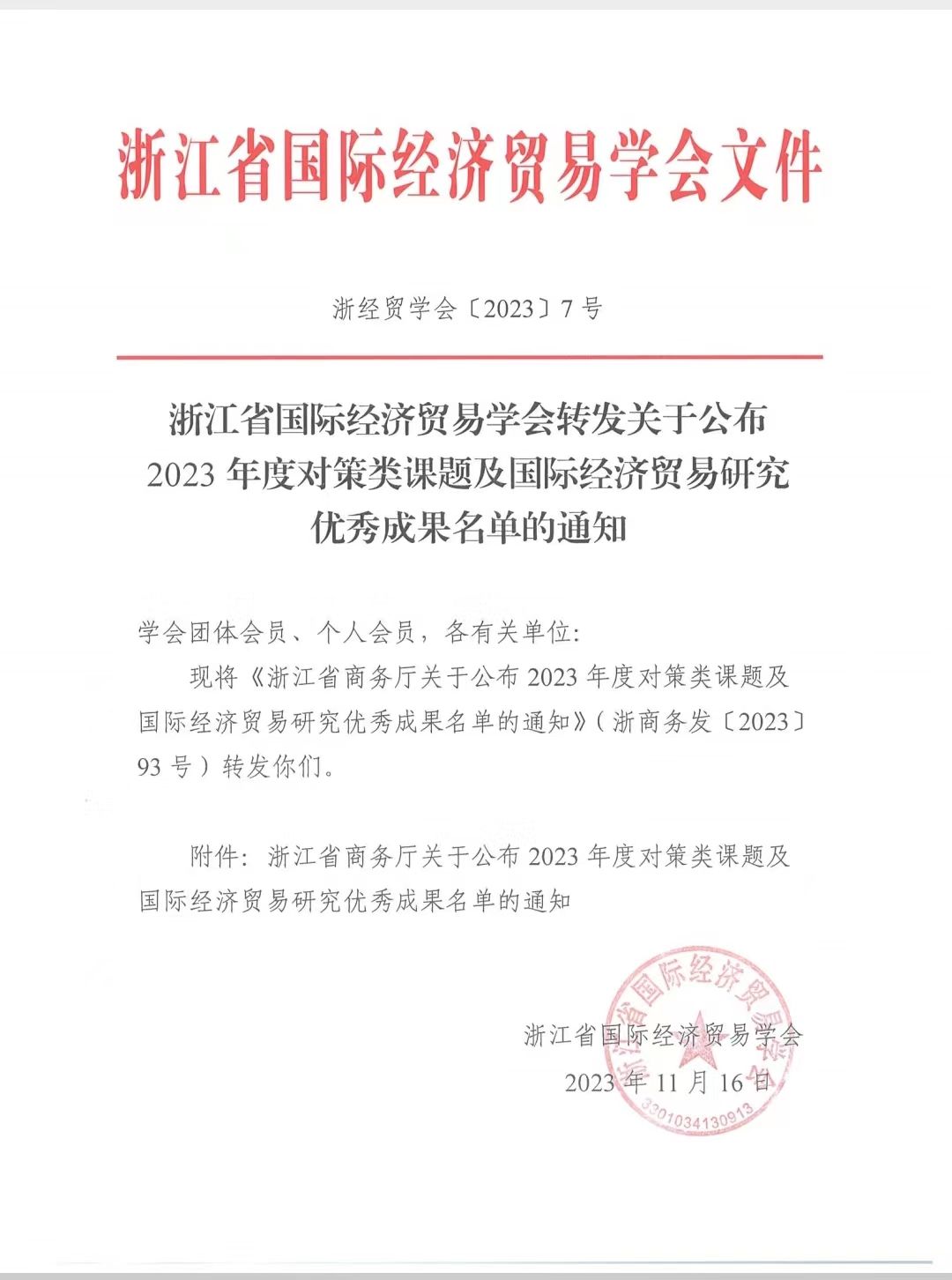 本次年会,还举行了学会2023年度国际经济贸易研究优秀成果奖颁奖仪式。我校MIB学位点刘晓丹老师获评优秀成果三等奖。