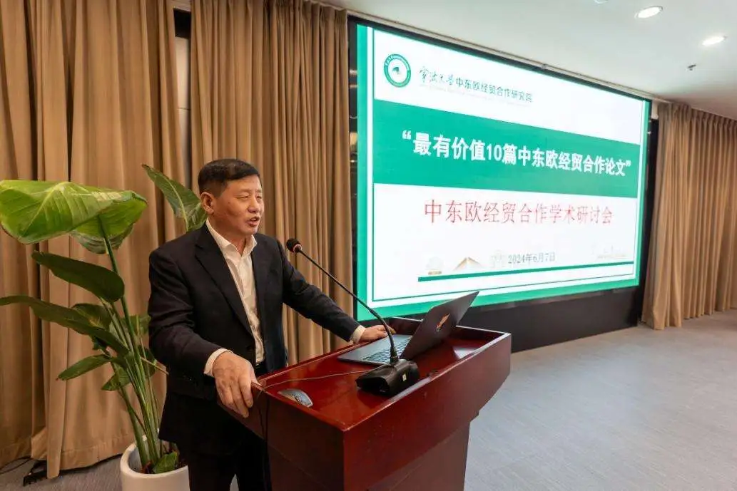 在中东欧经贸合作学术探讨会阶段,中国-中东欧国家智库交流与合作网络秘书长、中国历史研究院院务委员、中国社会科学院世界历史研究所所长刘作奎和宁波市中东欧博览与合作促进中心主任张亚东分别就《宁波与中东欧经贸合作现状与展望》做出报告。