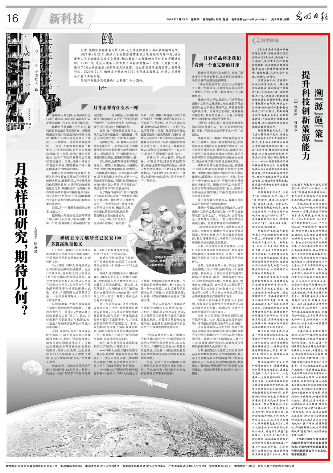 我校MIB专职教师杨丽华教授与其合作者在《光明日报》(2024年7月25日 第16版)刊发题为《溯“源”施“策” 提升科技创新策源能力》的文章。全文如下: