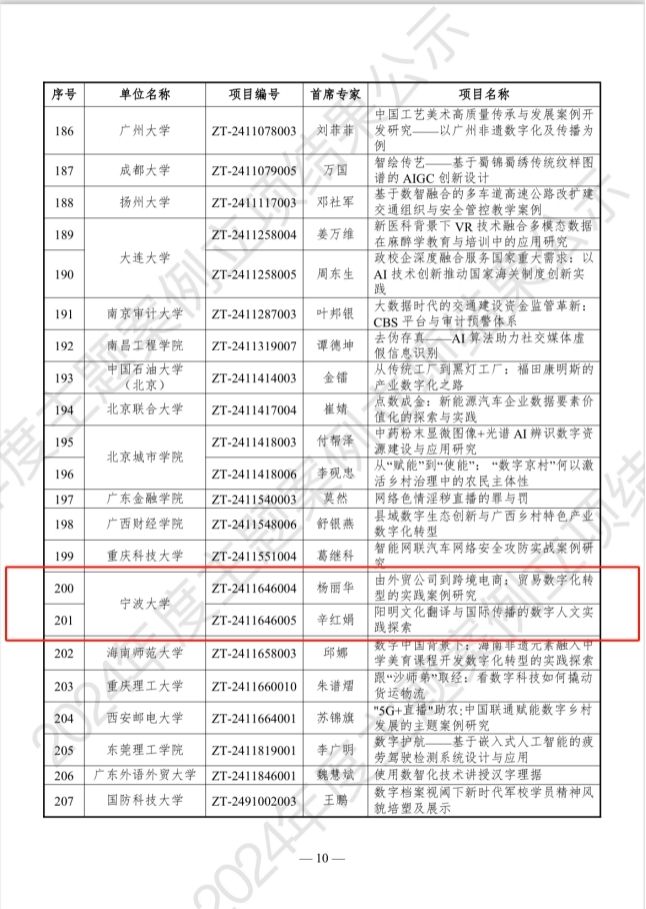 近日,备受瞩目的教育部学位与研究生教育发展中心“2024年度主题案例立项·数字中国”项目结果正式公示。我校MIB学位点负责人杨丽华教授作为首席专家,带领团队凭借《由外贸公司到跨境电商:贸易数字化转型的实践案例研究》项目脱颖而出,成功获得立项。