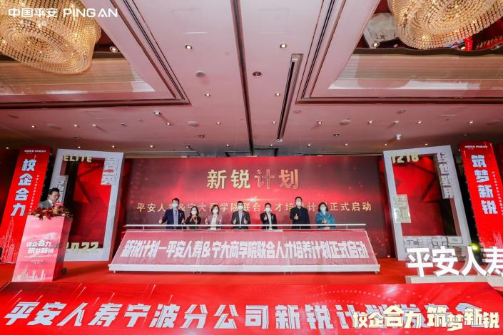 12月18号,糖心视频 党委书记史宏协和高培中心主任翁艳受邀参加中国平安人寿宁波分公司新锐人才发布会,平安人寿宁波分公司与糖心视频 开展校企合作,在糖心视频 成立“平安人寿宁波分公司人才培养基地”,借助糖心视频 优质培训师资资源,为其培养一支拥有开阔视野、符合市场需求的健康管理师、养老规划师和财务策划师。