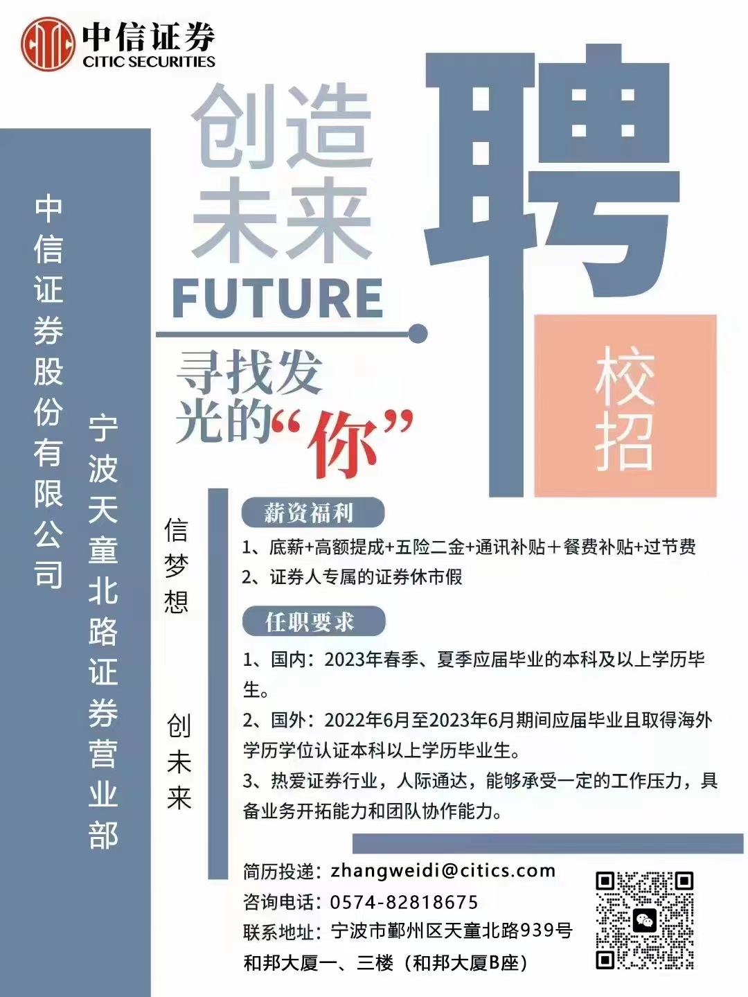中信证券宁波天童北路证券营业部校园招聘简章