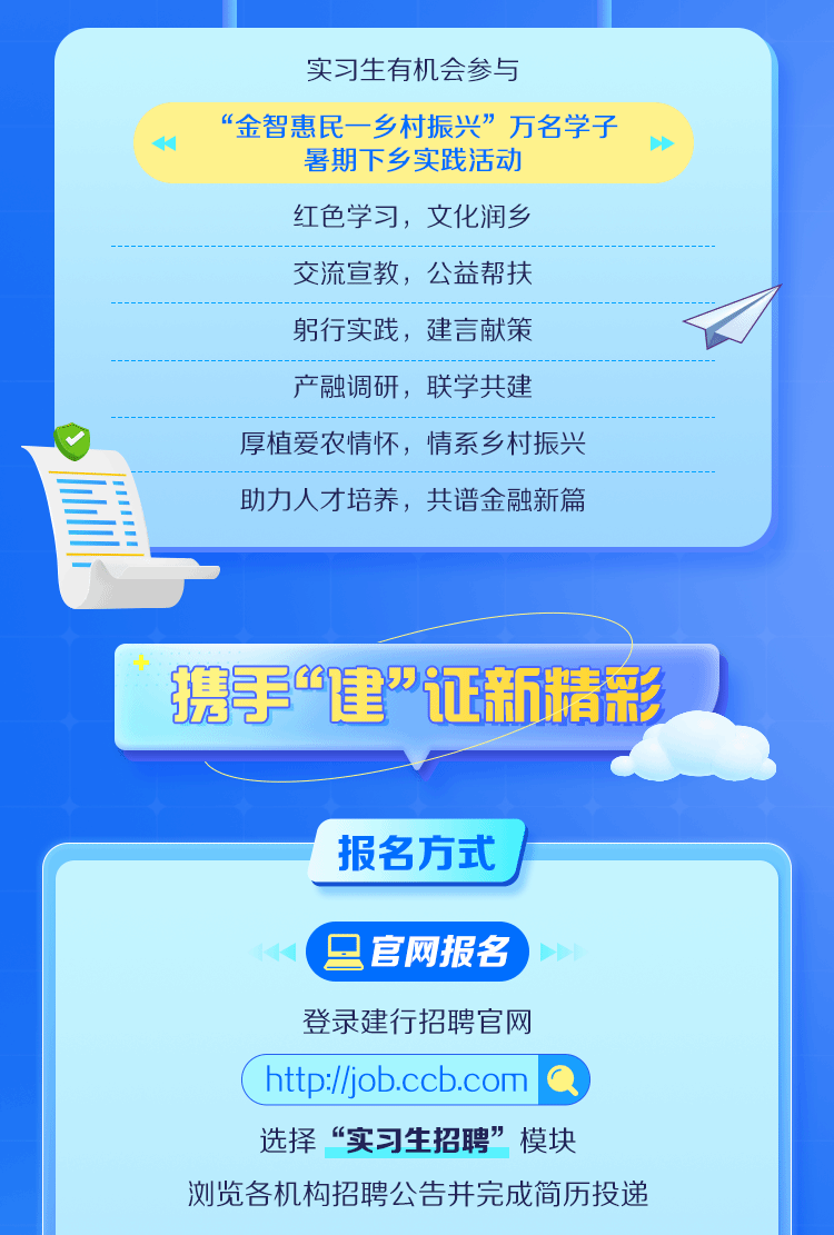 中国建设银行2024暑期实习招聘简章