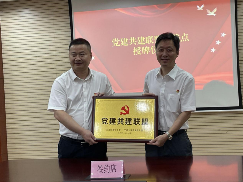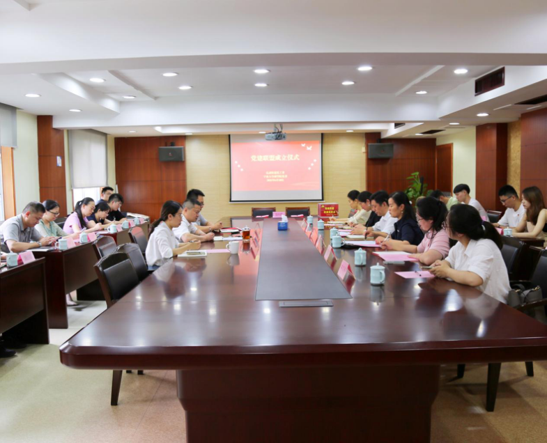 仪式开始前,共建双方就本单位党建工作情况作了详细介绍。施晟根据辖区地图,介绍了孔浦街道整体情况,韩雯琛重点介绍了我院学生基本情况和学生党建工作特色。