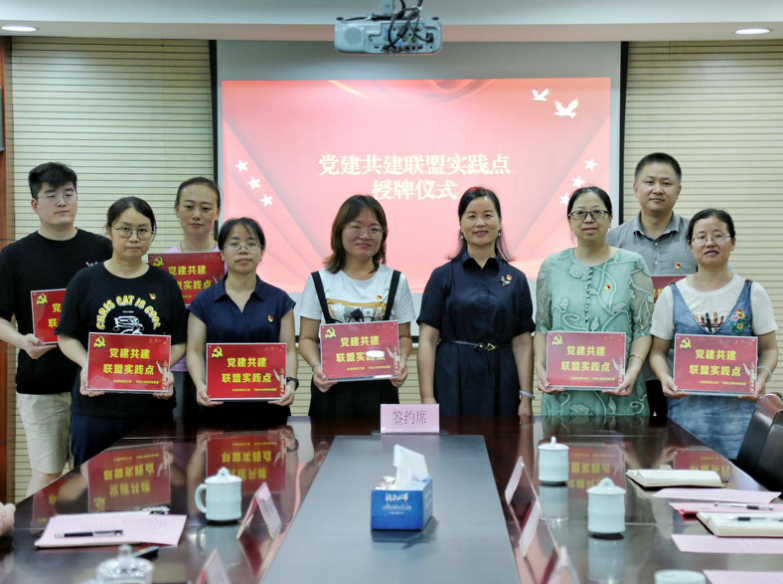 随后,共建单位双方书记共同签订了党建共建联盟协议,由韩雯琛为孔浦街道8个村社党组织的党建共建实践点授牌。