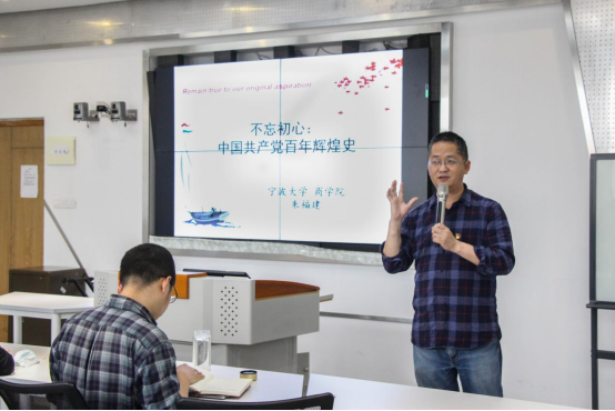4月28日,工商管理系教师党支部副书记朱福建老师给全体工商管理系教师党支部成员和学生党员上《不忘初心 中国共产党百年辉煌史》专题党课,围绕党的诞生和发展,以红色的起点、中国的起飞、新时代的中国三个时间节点为切入点,介绍了中国共产党百年辉煌史,从中总结出中国共产党不断前进的宝贵经验。