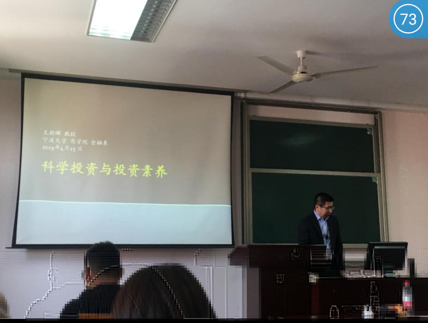 此次讲座的主题是“科学投资与投资素养”,王老师主要从如何撇开对投资的偏见以及如何做好投资两个方面向同学们做了阐述,结合现实中经常接触到的实例,用通俗易懂的方式给同学们解释了市场理论、投机投资、投资组合等投资的专业学语及理论知识。他说,投资是门学问,要学会科学的投资需要保持一个平常心。从长期来看,投资股票就是从众多投资项目中选择最优的投资品种。
