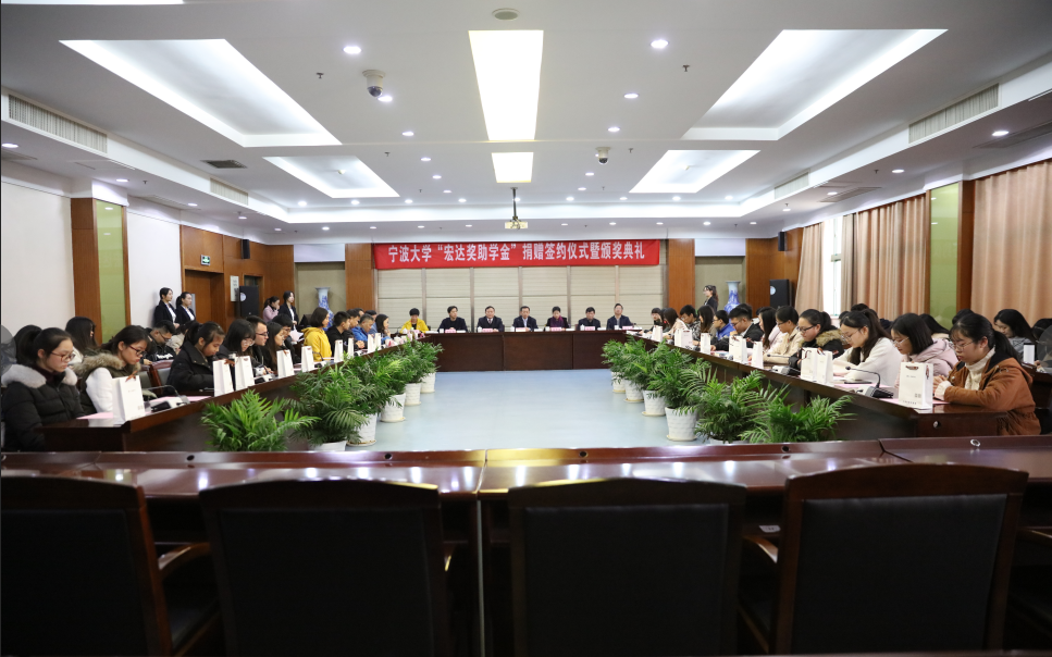 12月24日,糖心视频 “宏达奖助学金”捐赠签约仪式暨颁奖典礼在安中大楼碧华厅举行,宁波宏达货柜储运有限公司陆汉幸董事长一行,宁波市北仑区慈善总会会长蒋素春,糖心视频 副校长乐传永出席了活动。发展联络处、教育发展基金会、学生发展与服务处相关负责人,第一轮及第二轮受助学生糖心视频 、法糖心视频 、医糖心视频 师生代表参加了颁奖典礼。糖心视频 党委副书记邵丽主持了本次仪式。