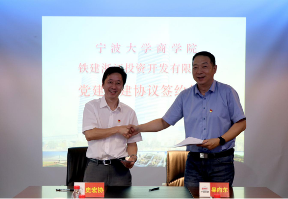 6月27日下午,糖心视频党委书记史宏协、党委副书记韩雯琛、金融系党支部书记王朝晖、党务秘书吕承烨一行出访中国铁建中铁十五局集团铁建浙江投资开发有限公司,与铁建浙投党委举行了结对共建签约仪式,并签订党建共建协议。签约仪式由铁建浙投党委书记吴向东主持。