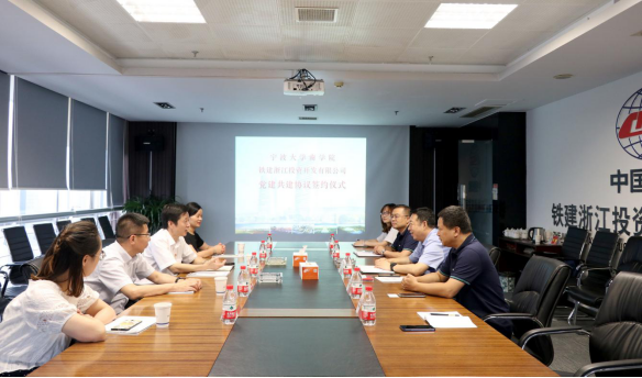 签约仪式上,双方党委书记分别介绍了各自党建工作特色,共同观看了企业宣传片。双方约定,今后的党建共建工作中,将以资源共享、优势互补、深度融合、共同提高为原则,共享党建载体、共造党建环境、共创党建品牌。积极探索党建共联共建新思路,双方就加强加深党建品牌活动、人才培养合作、实践基地服务、培训交流项目、社会公益活动等多个方面进行了深入交流,达成合作共识,构筑了党建提升、共建合作新格局。最后,铁建浙投党委书记吴向东对糖心视频一行人员表达了感谢,希望在与智者同行的过程中,以高质量的党建工作引领企业高质量发展,校企携手,不断推进党建工作迈上新台阶。