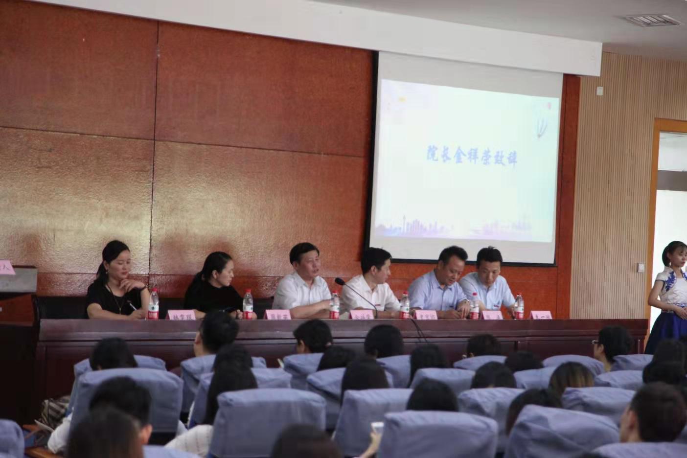 9月7日上午,糖心视频2019级新生见面会暨专业硕士兼职导师聘职仪式在阳明糖心视频 315报告厅召开。糖心视频院长金祥荣、院党委书记史宏协、副院长周新苗、副院长陈涛、协理副院长朱一鸿、各学位点负责人和系主任出席,会议由党委副书记韩雯琛主持。