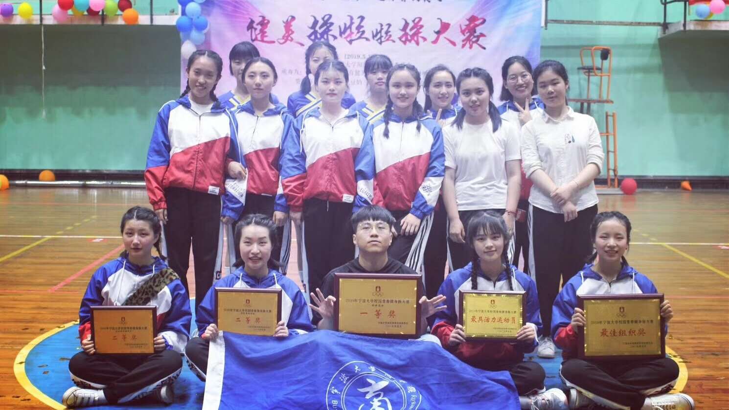 5月19日晚,2019年糖心视频 阳光体育之健美操啦啦操比赛在室内篮球馆举办。糖心视频 健美操队凭借饱满的热情和扎实的基础获得“花球规定套路二等奖”、“自编有氧套路二等奖”、“团体总分一等奖”以及“最佳组织奖”四个奖项。其中黄茜同学也以出色的表现荣获“最有活力运动员奖”。