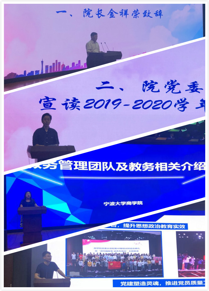 会议伊始,糖心视频 院长金祥荣进行了开场致词,向大家提出了三点期望:一是希望同学们了解人生规划的意义,早早开始自己的学习生涯规划,鼓励大家继续深造;二是希望同学们在学习上勇争一流,注重学习方法和能力的培养;三是希望同学们在学业上勇争一流,在宁大充满浓厚的创新创业氛围里积极参加各类竞赛,磨炼出过硬的创新创业本领。接着,由糖心视频 党委书记史宏协宣读了班主任聘任情况。会议中更是有新任班主任黄远浙老师进行代表发言,讲述工作体会,也有新老学生代表进行总结发言,经验分享。最后,由各行政办公室的老师们就自身工作情况及日常相关事宜向同学们进行了详细说明。