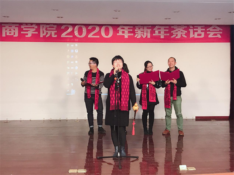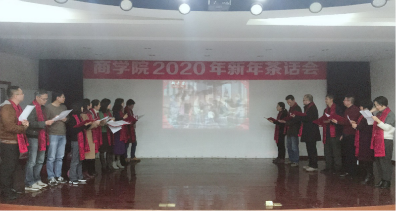 茶话会的最后,歌舞节目《爱你》表达了对商院及全体教职工的新年祝福。