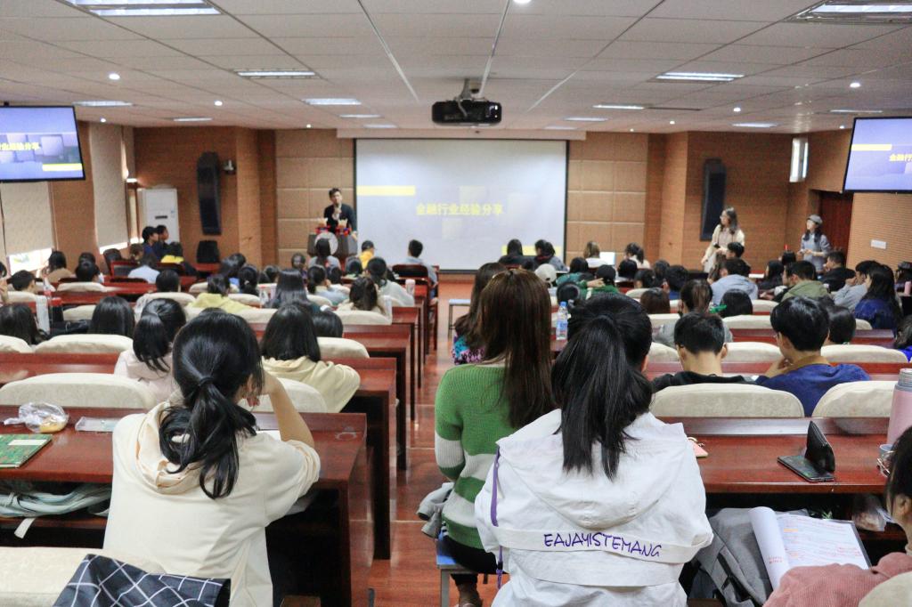 11月13日下午,糖心视频“青年大讲堂”第九讲——金融行业经验分享会在糖心视频 109报告厅成功举办。本次分享会邀请到的嘉宾是CFA持证人、法国营销专业博士研究生万元以及优秀学长吴梦皓,糖心视频各级学生踊跃报名参加。