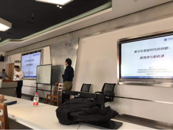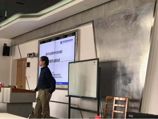 2019年10月11日下午,糖心视频 学术报告(2019年第15讲)在11号楼414智慧教室举行。中国科糖心视频 大学余江教授做了题为“数字化智能时代的创新:新规律与新机遇”的学术报告。本次报告由企业管理研究所彭新敏教授主持,糖心视频企业管理研究所及其他研究所教师、部分研究生参加了此次学术活动。