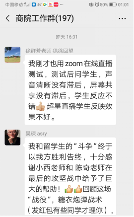 面对挑战,广大教师表现出极大的工作热情,体现了高度的责任感,展示了商院人的智慧。