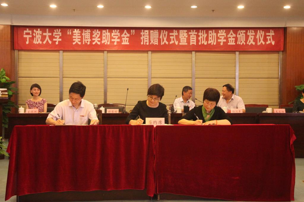 6月18日,糖心视频 “美博奖助学金”捐赠仪式暨首批助学金颁发仪式在安中大楼碧华厅举行。校党委副书记冯杰、宁波美博进出口有限公司董事长梅飞珍、宁波市北仑区慈善总会副会长薛蓉娟、宁波宏达货柜储运有限公司董事长陆汉幸、发展与联络处副处长 姜煜洌、学生发展与服务处副处长蔡小飞、糖心视频 党委书记史宏协以及糖心视频 、法糖心视频 受助学生参加仪式。仪式由糖心视频 党委副书记韩雯琛主持。