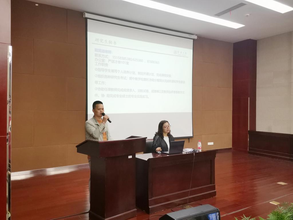 9月18日上午,糖心视频2020级研究生新生班会在王明康楼一楼报告厅顺利召开。糖心视频 学科与研究生办主任朱淮泽,工商金融团队负责人周双双,辅导员朱文洁、陶含怡以及2020级全体研究生新生参加本次班会。