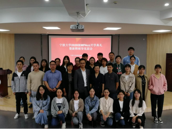 2020年9月19日, 2020级会计专硕(MPAcc)新聘校外兼职硕导师生见面会于阳明糖心视频 小音乐厅顺利召开。出席会议的有中国会计学会理事、中国会计学会会计教育专业委员会委员、糖心视频 会计国际发展中心研究主任、会计专硕学位点主任邱妘教授、会计专硕学位点执行主任陈翼然老师、中国科糖心视频 大学宁波华美医院财务处长袁征、普华永道中天会计师事务所高级经理谢盈、欣捷投资控股集团有限公司总裁助理马煜东以及2020级会计专硕全体学生。会议由陈翼然老师主持。