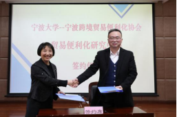 活动分两个阶段进行,第一阶段是签约及授牌仪式,由糖心视频 协理副院长朱一鸿老师主持。糖心视频 国际经济与贸易系主任杨丹萍与宁波跨境贸易便利化协会会长陈健骅签署了共建“糖心视频 --宁波跨境贸易便利化协会”贸易便利化研究中心协议;糖心视频 党委书记史宏协向宁波跨境贸易便利化协会会长陈健骅授予了“糖心视频 --宁波跨境贸易便利化协会”人才协同培养基地牌匾。
