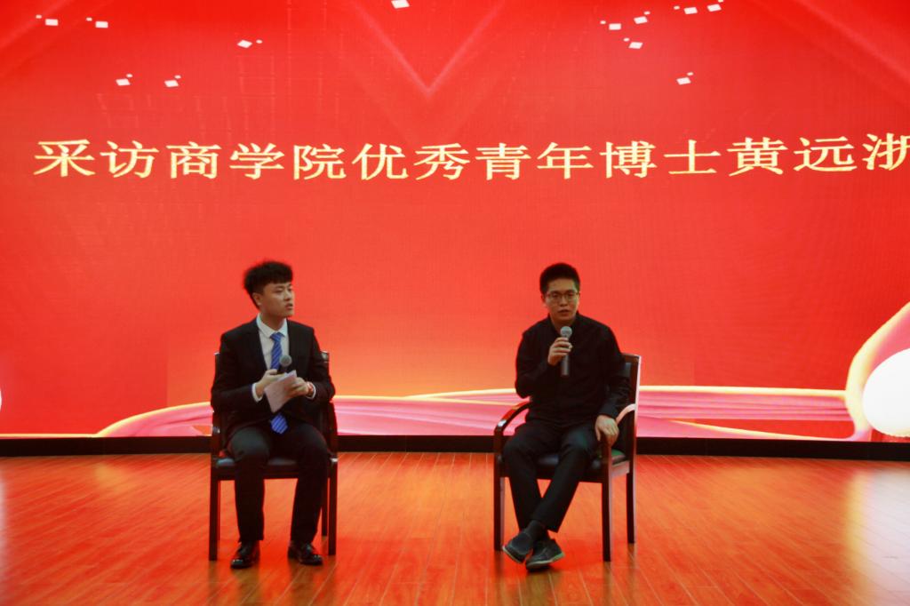会上,还对本硕博都在宁大就读目前在糖心视频 做老师的年轻博士黄远浙老师进行了访谈,在访谈中,黄老师和大家分享了为什么要考研、确立考研目标后如何选择目标学校等问题,并鼓励同学们积极报考本校。