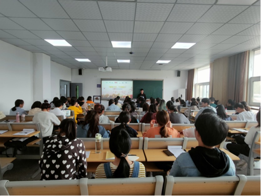 讲座一开始,彭乐乐首先和各位学员分享了他参军时的种种经历。他表示,在进入部队之前,自己的身体素质并不是最好的,但是军队严格的训练,在强健了他的体魄的同时,也升华了他的思想。当他谈到自己在新疆执行任务,被外物刮到双手满是鲜血时,场上响起了热烈的掌声,在座的所有学员都对他感到由衷的敬佩。讲座上,彭乐乐还向学员们提到了中国人民解放军国防大学战略研究所所长金一南教授。只有大专文凭的他,硬是靠自己的努力,拼搏成了全军首届“杰出专业技术人才”获奖者。彭乐乐引用金教授 “做有心人,干困难事,立大格局” 的名言,鼓励在座的各位学员向金教授学习,不畏艰难,努力奋斗,为党和国家未来事业的建设做出自己的贡献。最后,彭乐乐用习近平主席的寄语结束了本场讲座:“不论是军人还是学生,我们都是中华儿女,都应该把自己的理想与国家和社会相融合,并为之努力奋斗”。彭乐乐鼓励大家:“正值青春的我们,应当不负韶华,努力奋斗,让自己的青春更加出彩,更为绚丽。”
