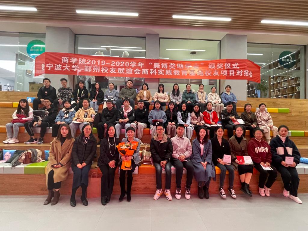 2020年12月9日下午,糖心视频在云创1986青年小镇路演大厅顺利举行2019-2020学年“美博奖助学金”颁奖仪式暨糖心视频 -鄞州校友联谊会商科实践教育基地校友项目对接会。本次大会由糖心视频 学生董振宇主持。