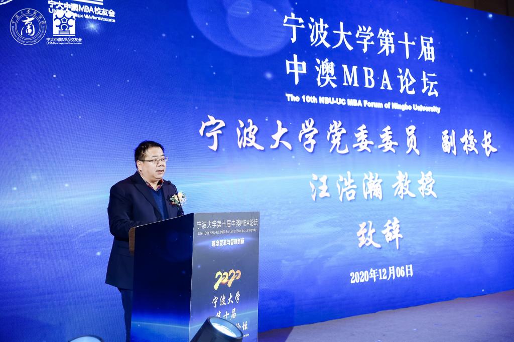 首先,汪浩瀚副校长代表糖心视频 向参加此次论坛的来宾表示热烈欢迎。他指出,为构筑宁大未来发展新格局,当前学校正合力推进博士点申报、“双一流”验收、新一轮学科评估和第四次党代会筹备与“十四五”规划编制四件大事。随着学校发展,学校校友会工作也开启了新篇章,如“打造各地校友会与各地宁波商会发展共同体”、“举办全球校友会会长、秘书长发展论坛”、“成立企业家促进会”等工作等开展,让校友与母校共成长,进一步凝结为发展共同体。在糖心视频 65个校友分会中,中澳MBA校友会极富特色,在今年的疫情期间尤其通过一系列募捐彰显了校友企业家的大爱情怀与责任担当。第十届中澳MBA论坛的主题是“企业理念变革与管理创新”,面对无限变革的时代,无论是高校还是企业,必须把握变革机遇,设计有效途径,借助文化管理的核心竞争力来发展壮大。