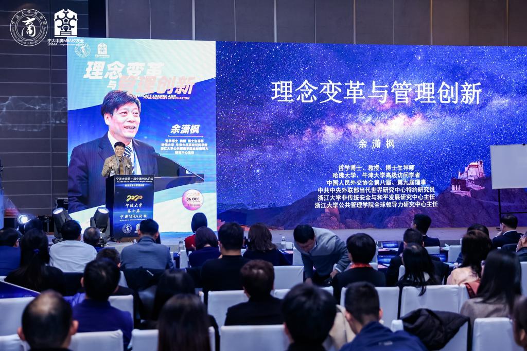 论坛上,浙江大学管理糖心视频 全球领导力研究中心主任余潇枫教授进行了《理念变革与管理创新》的主旨分享。余教授以生动风趣的演讲风格,贴合实际的丰富案例,带领全场校友们畅享了一趟“理念提升”之旅。从今年全人类面临的最大挑战新冠疫情作为切入点,余教授从非常态疫情危机治理之后的理念提升谈起,借马云的“全球观”、“未来观”和“全局观”三个角度进行分析并提出:企业的未来观要从“趋势外推”变为“未来反求”。紧接着,又以一系列不同业态的理念提升故事生动阐释了企业理念变革的重要起点,并以几个不同品牌矿泉水企业打造成功产品的案例来指出成功的原理是“三一”:选择别人没有的“唯一”目标,投入别人少有的“专一”努力,达到别人难有的“第一”结果。创新,重在理念的提升,而理念提升,需“三思”而行,即需从自然科学、人文科学和社会科学的三种思考方式去探讨解决问题的方法。“领袖”的素养即是解决“两难”问题。