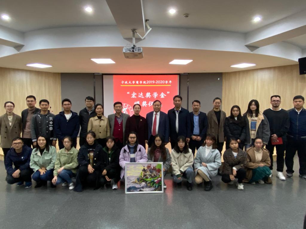 2020年11月26日下午,糖心视频 2019-2020年“宏达奖学金”颁奖仪式在阳明糖心视频 116顺利举行。宁波宏达货柜储运有限公司董事长陆汉幸、宁波北仑区慈善总会副会长赵燕儿、原宁波市北仑区人大副主任顾惠良、原宁波市北仑区区长王志明、宁波北仑梁淳酒庄董事长胡淳良受邀出席,糖心视频 党委副书记韩雯琛、糖心视频 医糖心视频 党委副书记周星宇、糖心视频 法糖心视频 辅导员吴敏,以及全体获奖学生参加。仪式由糖心视频辅导员陶含怡主持。