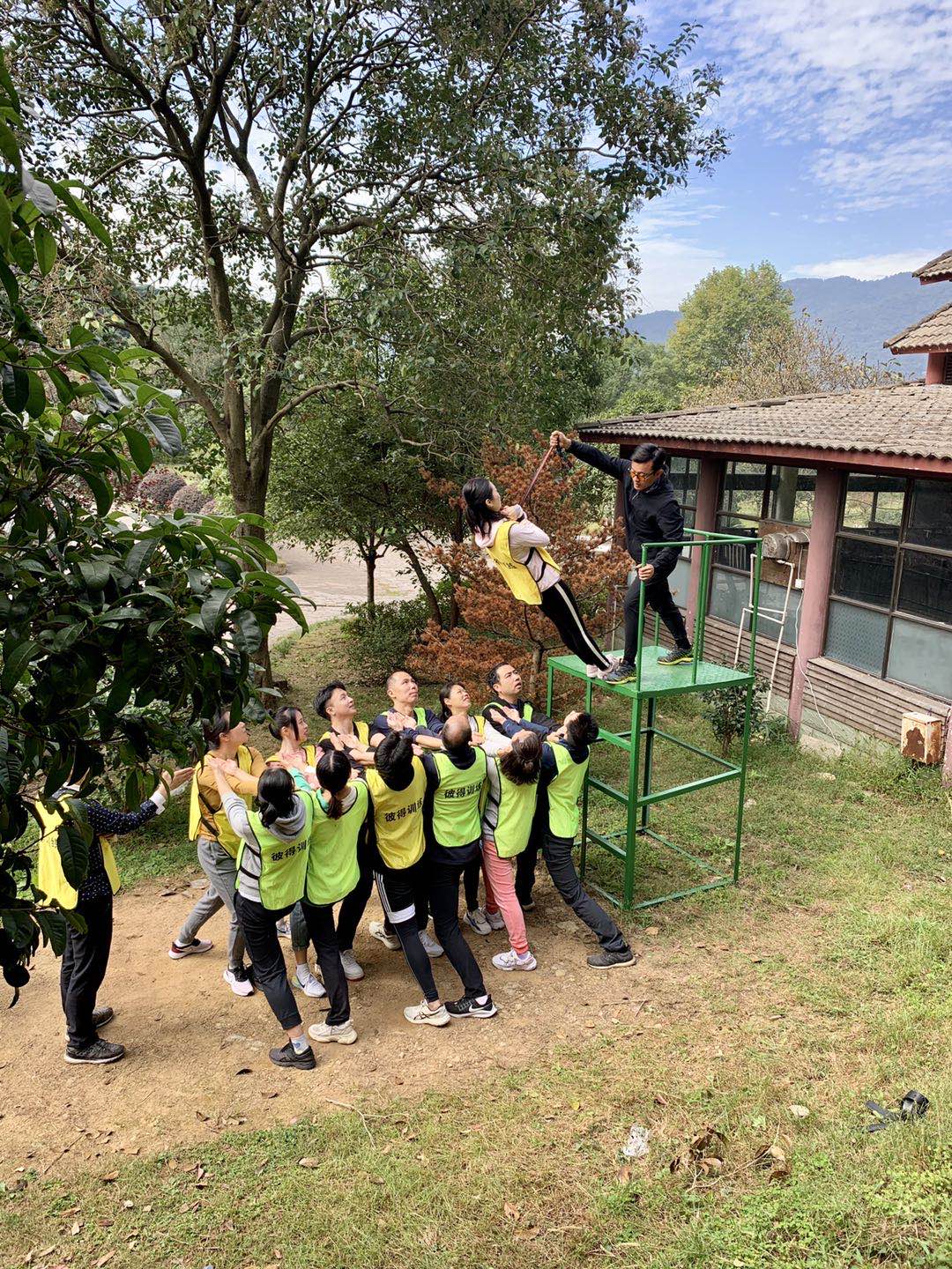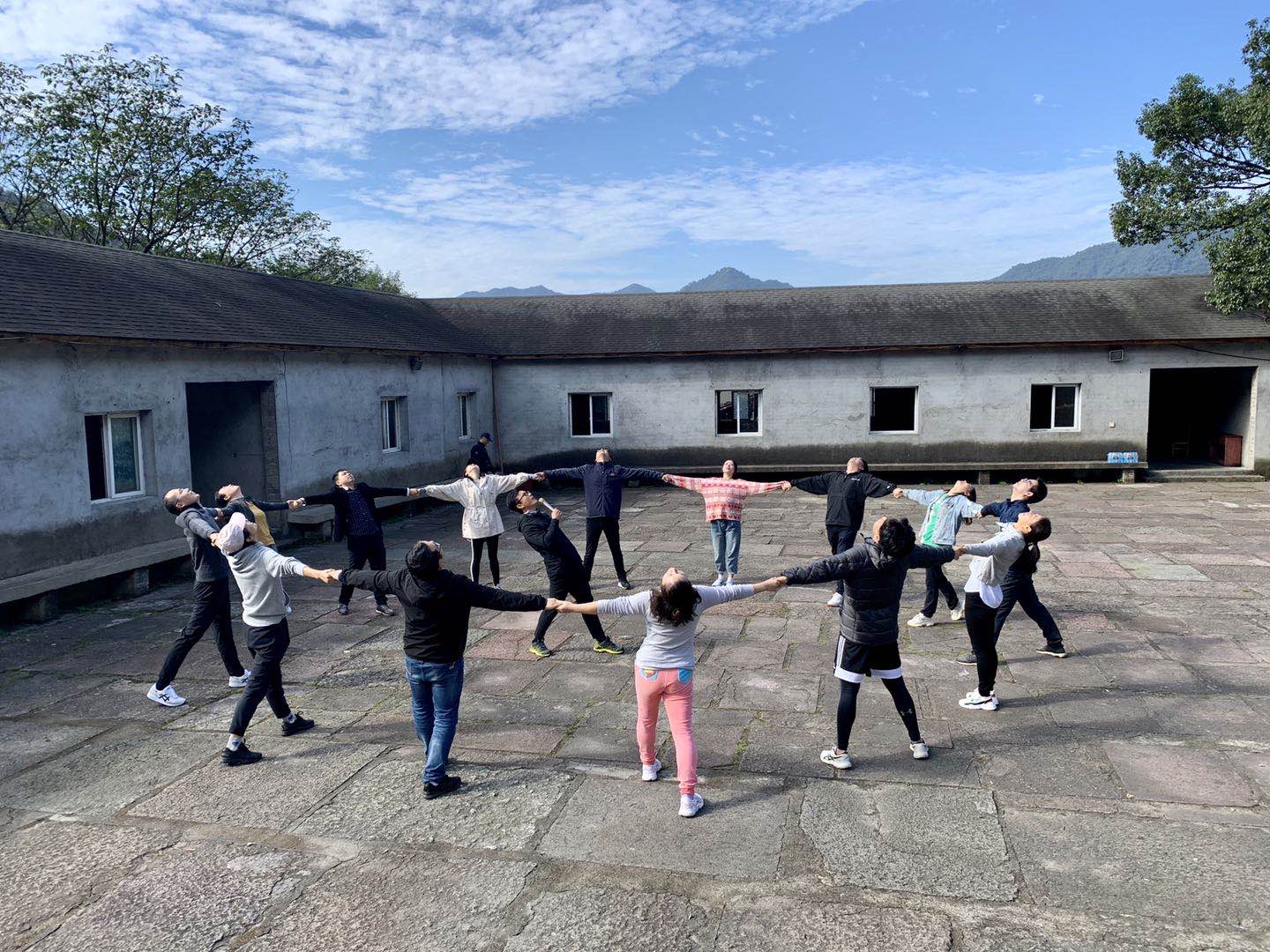 上午9点,学员们抵达风和景丽的横溪酒埕岩拓展基地,依计划开始当日的拓展训练。在教练的指导下,系列热身活动很快消除了人和人之间的陌生距离,大家娴熟地分组、起队名、选队长、呼队训、唱队歌,现场诞生了“雄鹰”与“战狼”两支队伍。