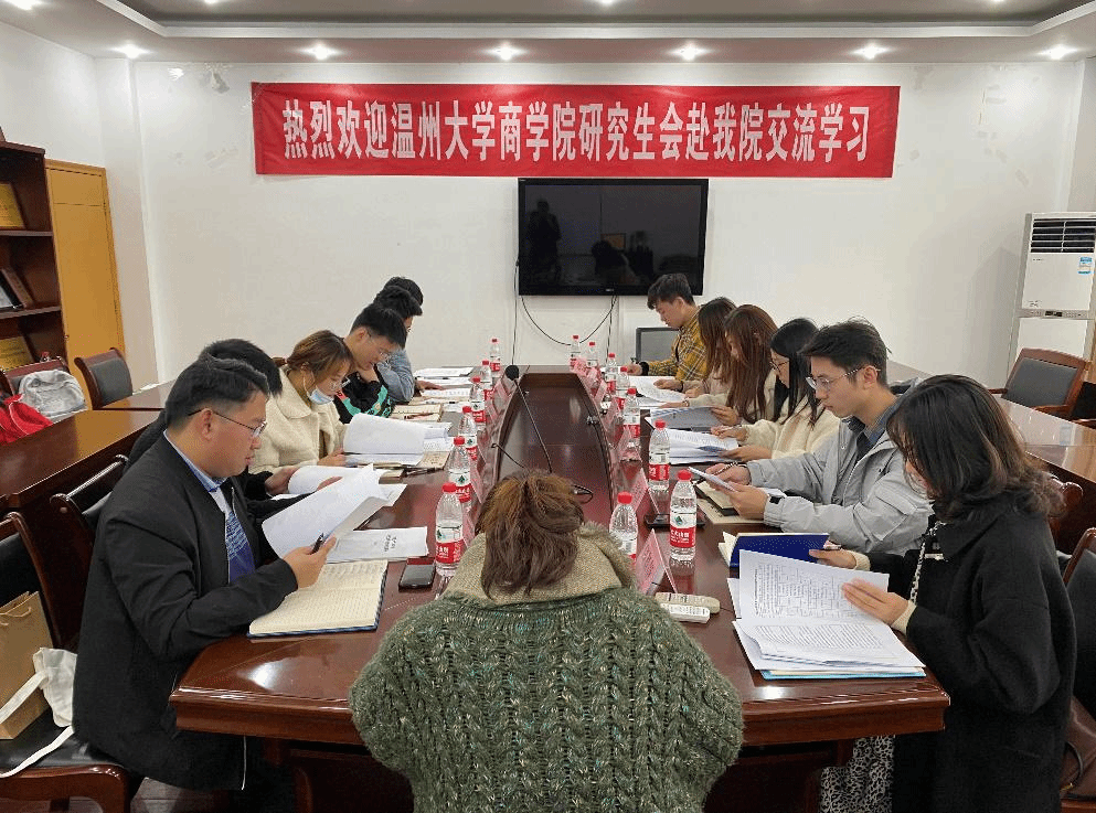 12月5日下午,温州大学糖心视频 研究生会执行主席夏禹,主席团成员翁羽等人到达糖心视频 11号教学楼410室,与糖心视频研究生会展开交流活动。糖心视频研究生会秘书长朱文洁老师,主席团成员参加了本次交流活动。
