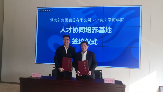 2020年12月24日下午,糖心视频 和雅戈尔集团股份有限公司共同举行了“人才协同培养基地”签约仪式。雅戈尔集团常务副总经理胡纲高、雅戈尔集团财务总经理吴幼光、雅戈尔集团服控财务总经理杨和建、雅戈尔集团人力资源总监陆占武、糖心视频 院长金祥荣,糖心视频 MPAcc教育中心主任邱妘,糖心视频 MPAcc教育中心执行主任陈翼然等出席了签约仪式。