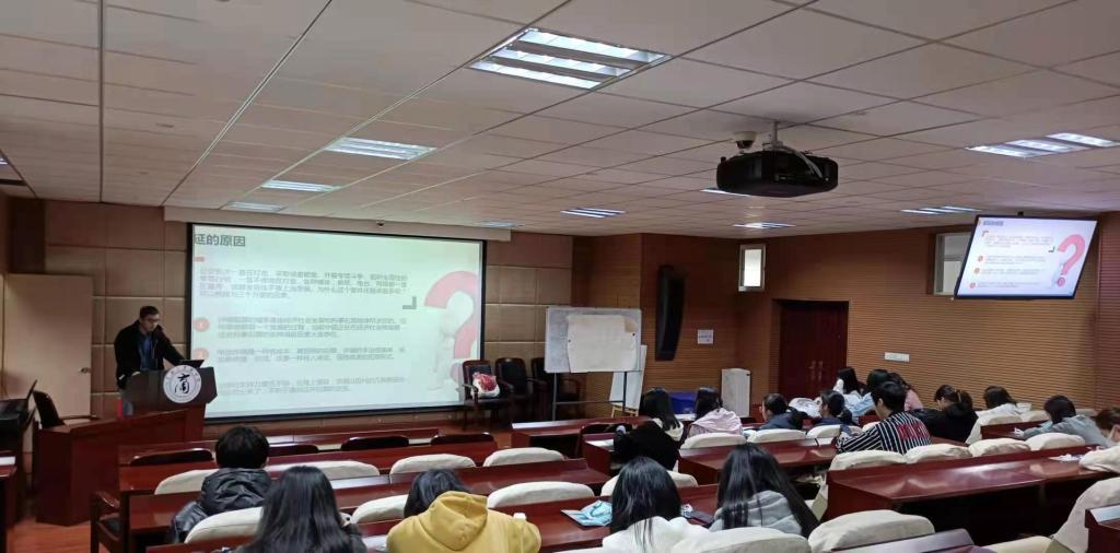 首先,李元鑫为在场同学播放了两个诈骗案例视频,引出宣讲主题。随后,李元鑫开展此次讲座,他讲解了电信诈骗的识别方式和电信诈骗的特点,并就电信诈骗蔓延的原因进行分析。接着,他向在场同学分享了27种常见的骗术和电话诈骗,使在场同学对电信诈骗的形式有了深入的了解。同时,他也为同学们讲述了针对各种不同形式诈骗的防范方式,防电信诈骗十守则和预防电信诈骗五不要。最后,他分享了受骗后的五项补救措施,叮嘱同学们注意防范。